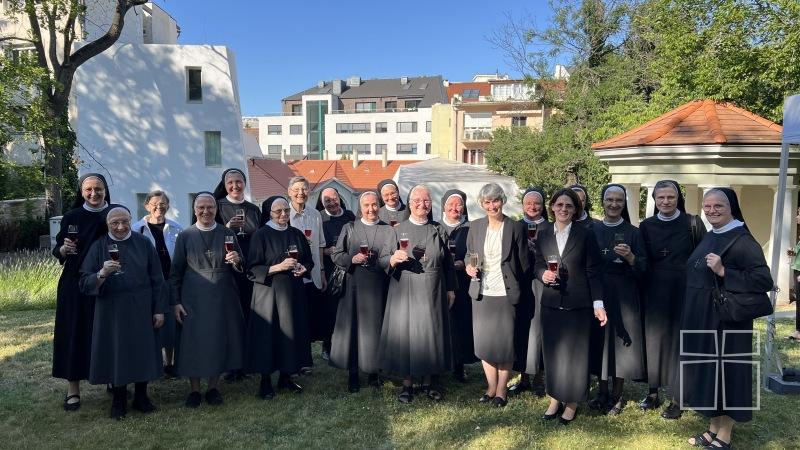 Az ünnepség zárásaként a budapesti ház lakói, Mária és Eszter nővér a rendház felső kertjében köszöntötték a vendégeket és megköszönték püspök atyának, hogy elvégezte a szentelést és tanításában megerősítést kaphattak hivatásuk és küldetésük további útjára.